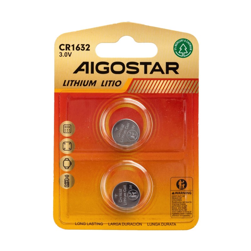 Batteria a Bottone CR1632 3V 2 PZ Aigostar